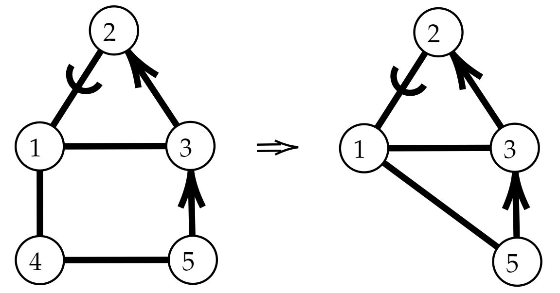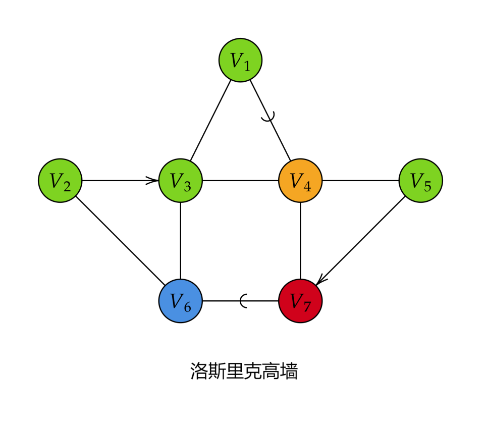 我们仔细观察最简逻辑图,得知该图有两个驻点 V1V_1V_1 和 V7V_7V_7 ,一个简单的想法是,将两个驻点引出一条边,与一个次邻顶相连,就可以将驻点消除,此时可以画出新的最简逻辑图。