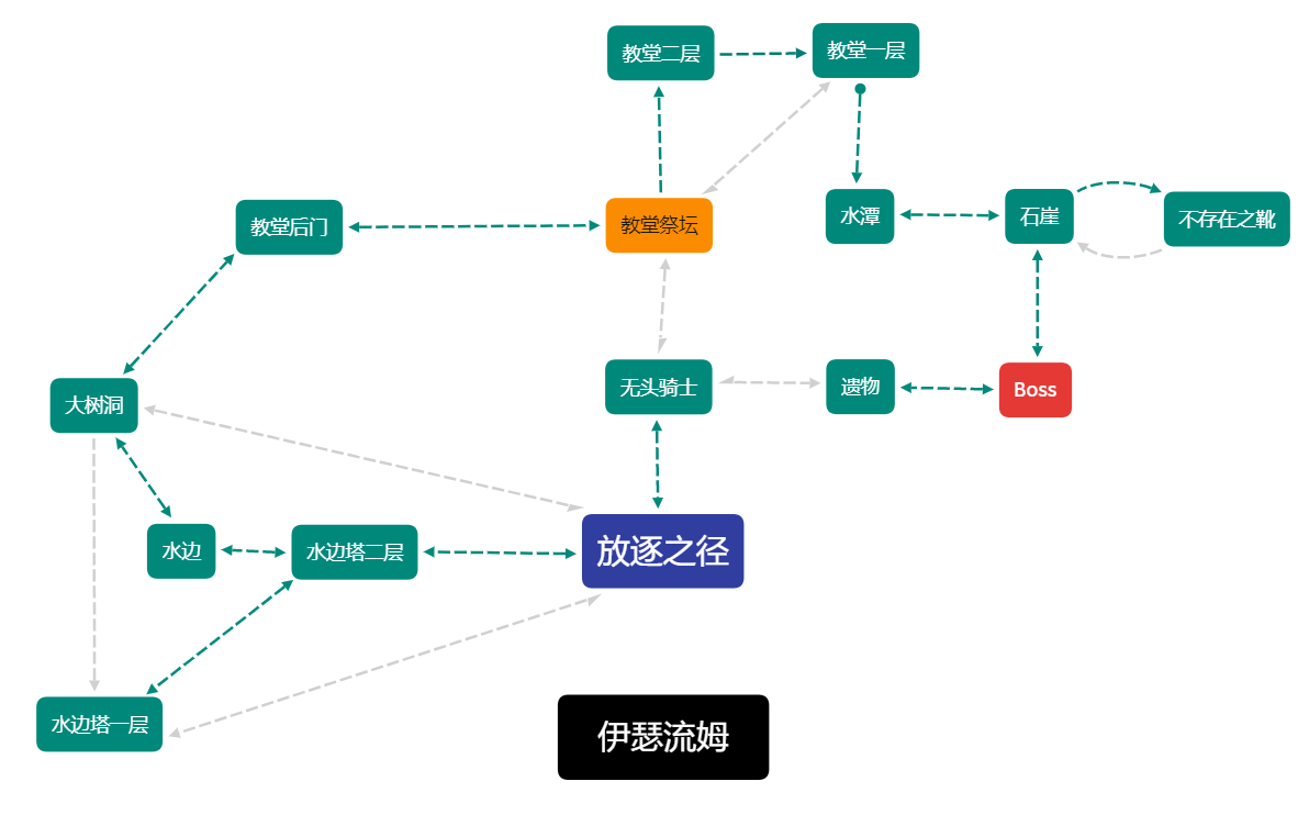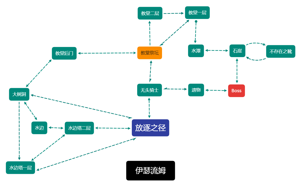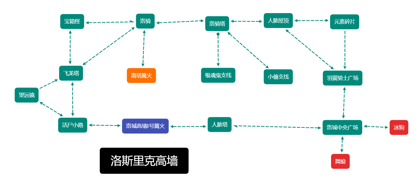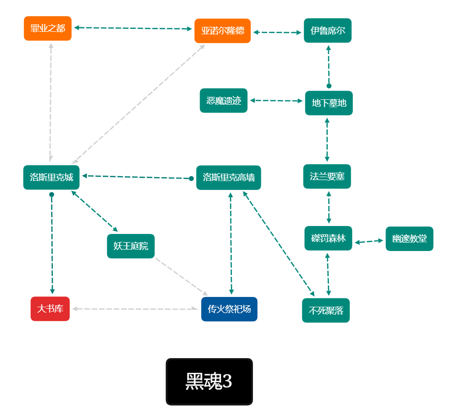 伊鲁席尔、熏烟湖、魂3亚诺尔隆德、洛斯里克城、妖王庭院、洛斯里克高墙的最简逻辑图