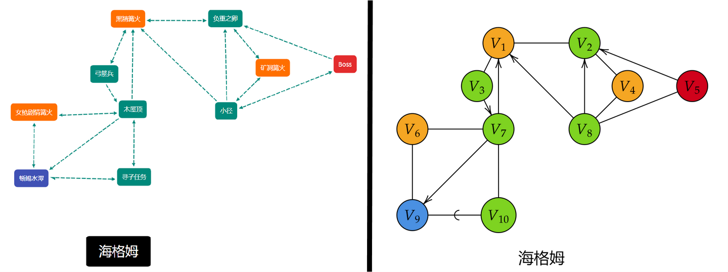 左侧为手绘海格姆地图,右侧为自然逻辑图