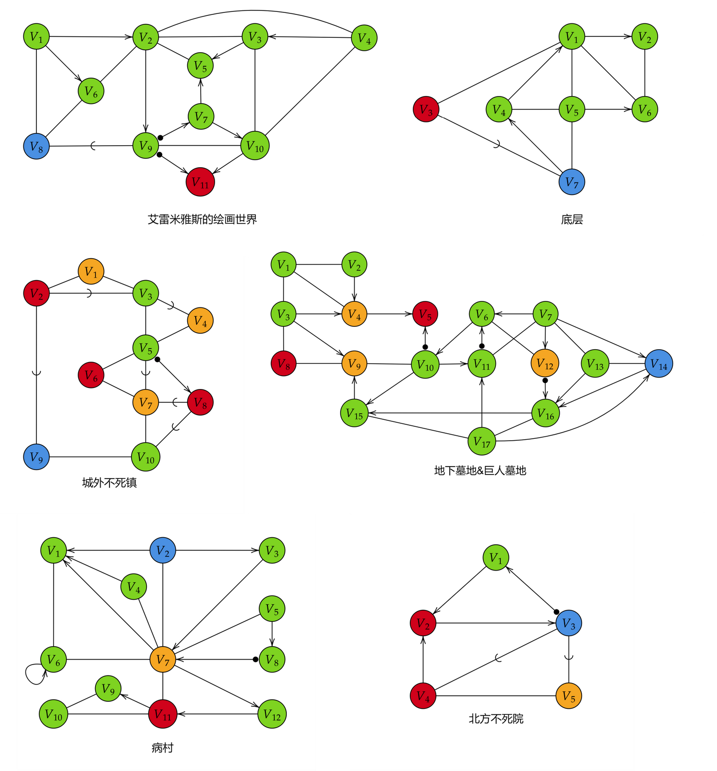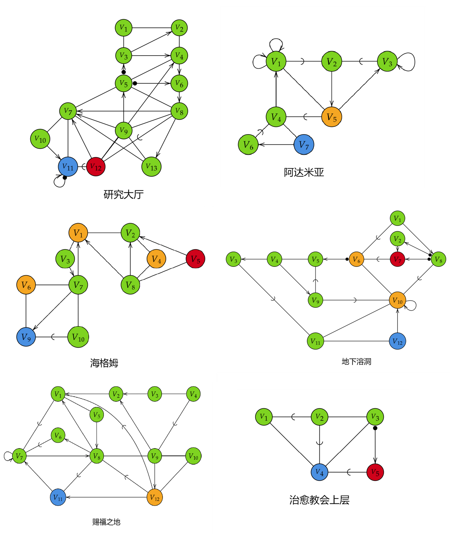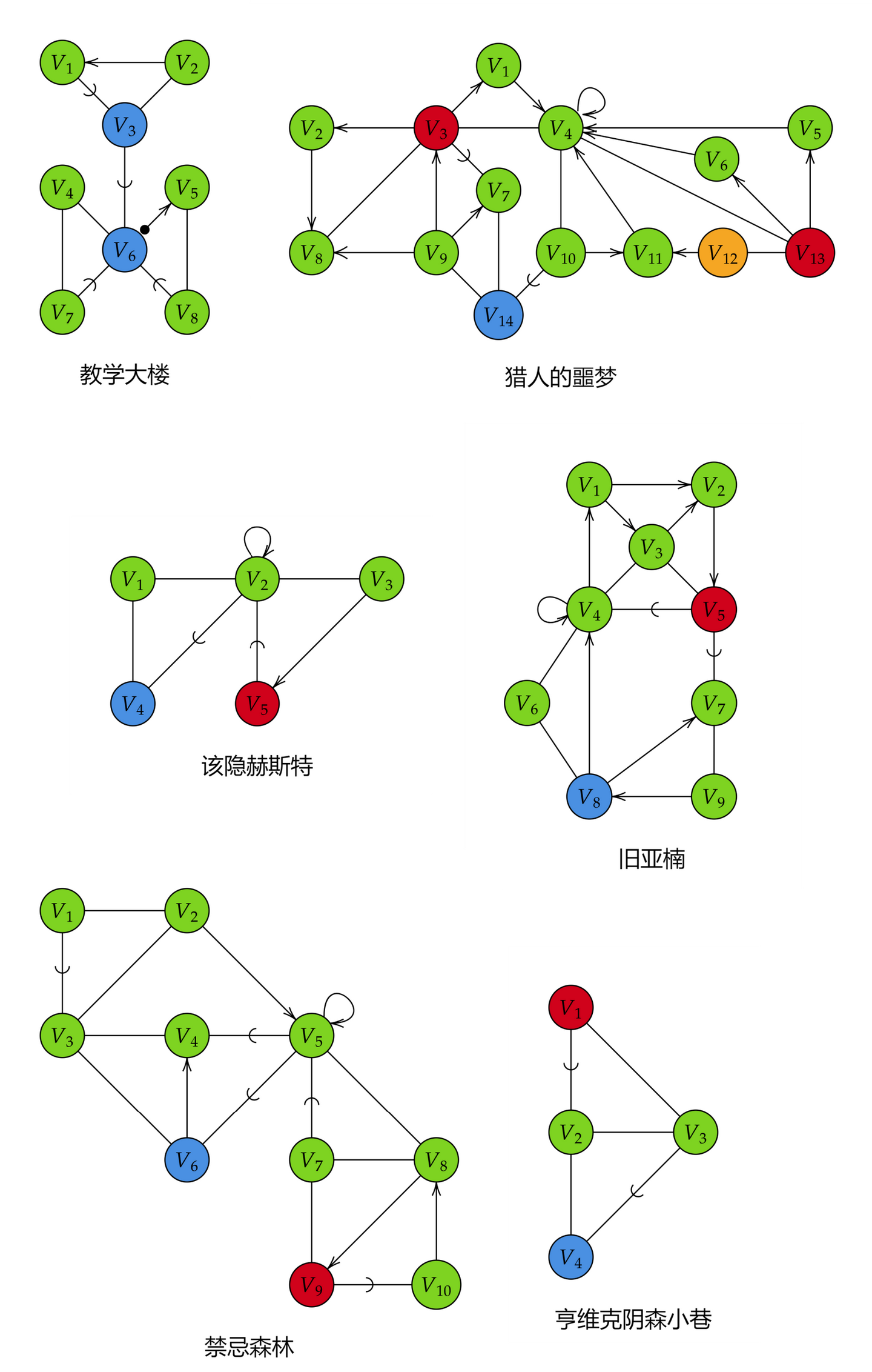 教学大楼、猎人的噩梦、该隐赫斯特、旧亚楠、禁忌森林、亨维克阴森小巷的最简逻辑图