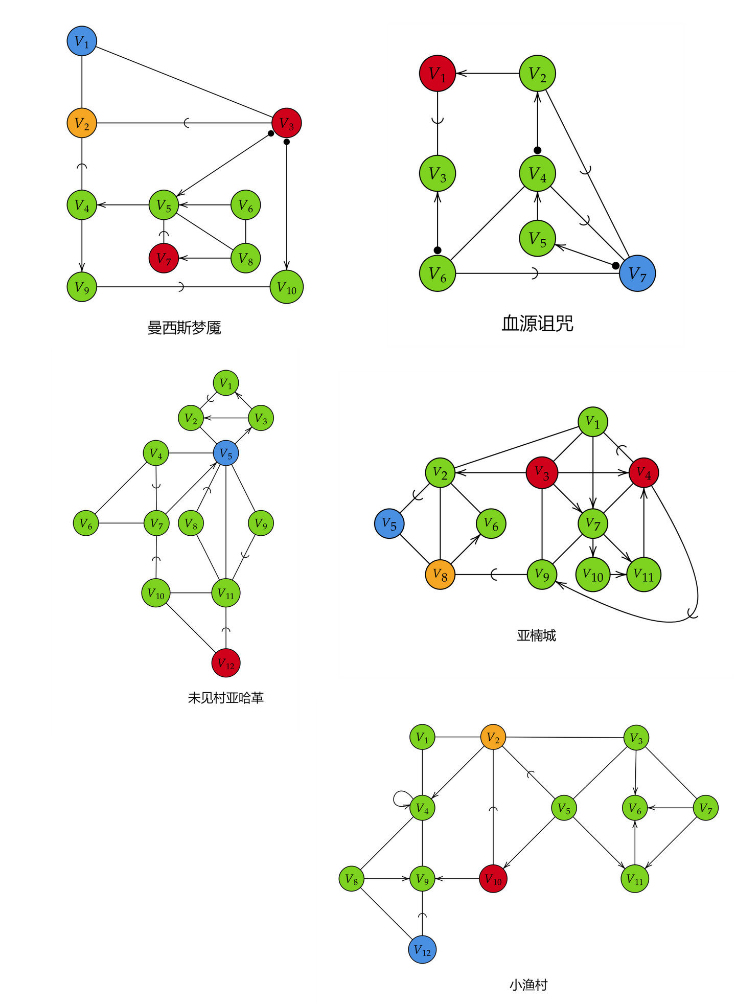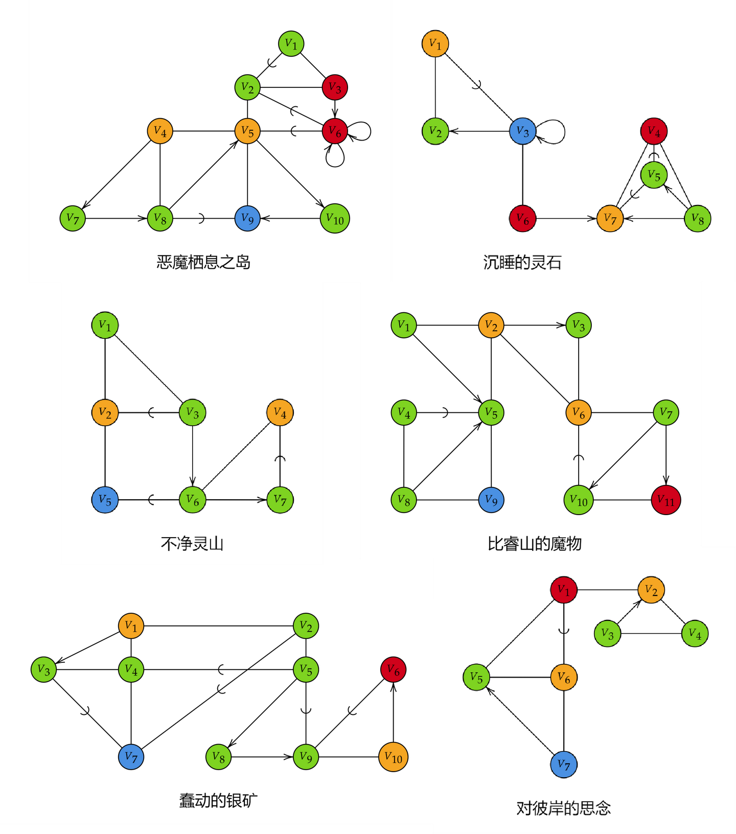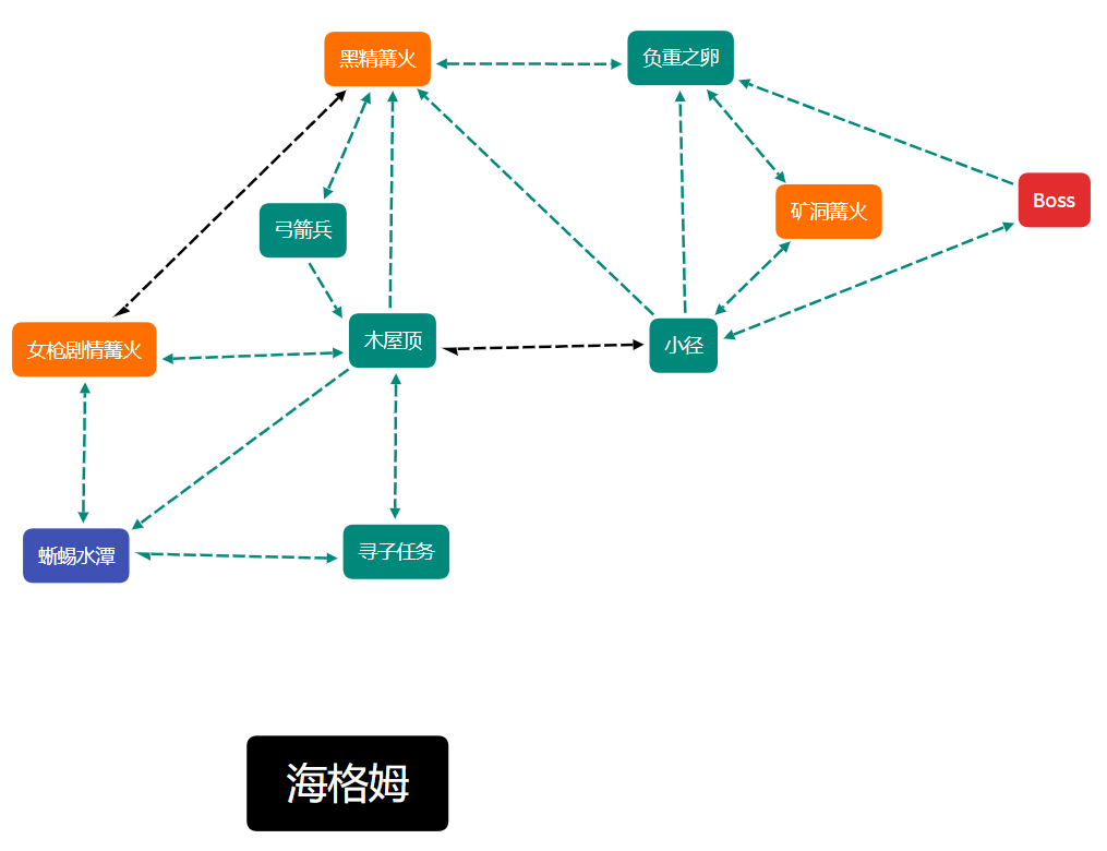 教学大楼、猎人的噩梦、该隐赫斯特、旧亚楠、禁忌森林、亨维克阴森小巷的最简逻辑图