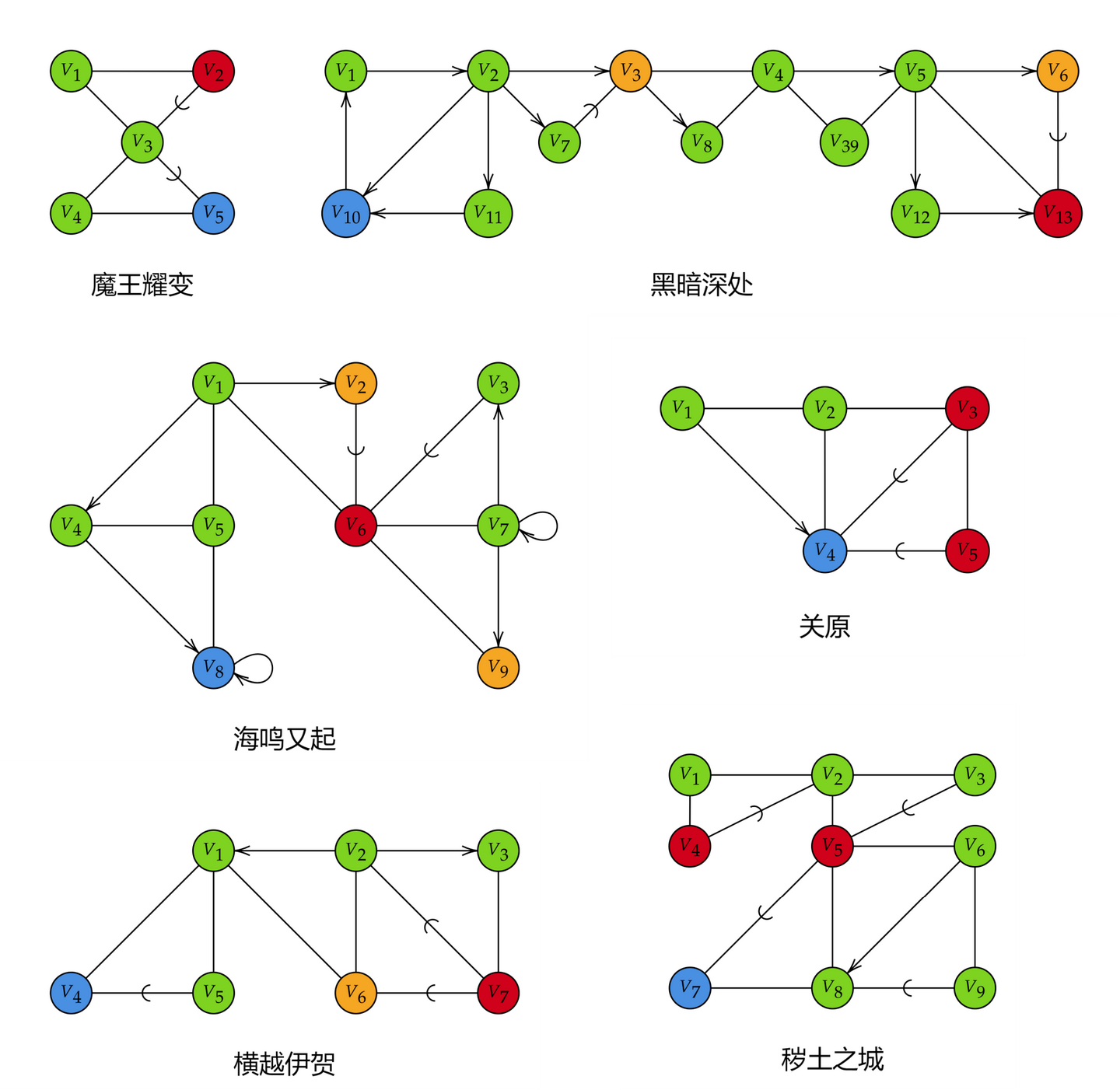 魔王耀变、黑暗深处、海鸣又起、关原、横越伊贺、秽土之城的最简逻辑图