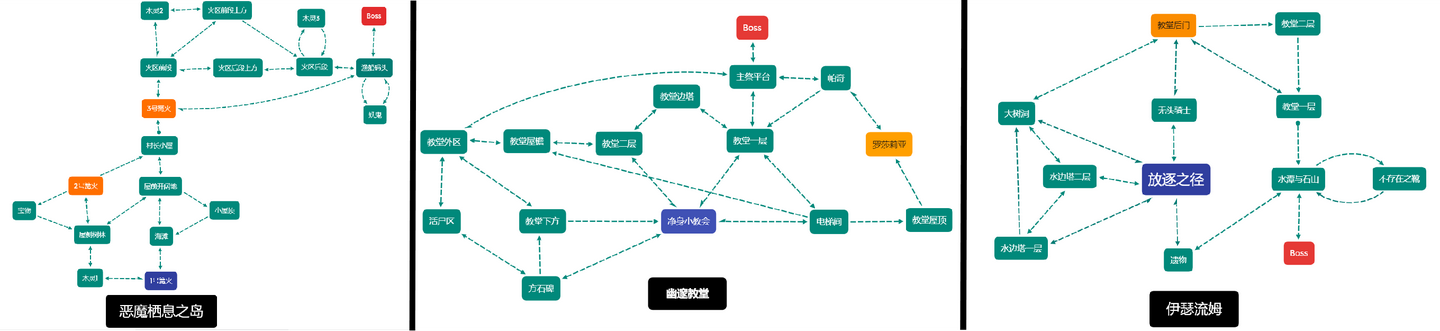 在我们后续的讨论中,称初始点、存档点、Boss点为“不动点”,单向门、单向路、机关门称为“不动键”或“特殊键”。(至于为何如此称呼请见下文)。