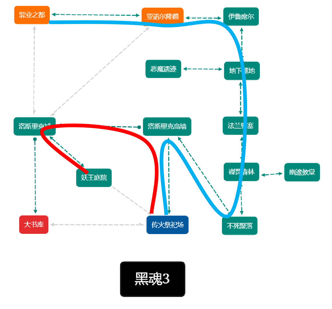 魂1亚诺尔隆德、地下监牢、不死聚落、大书库、魂3全流程、卡萨斯地下墓地的最简逻辑图