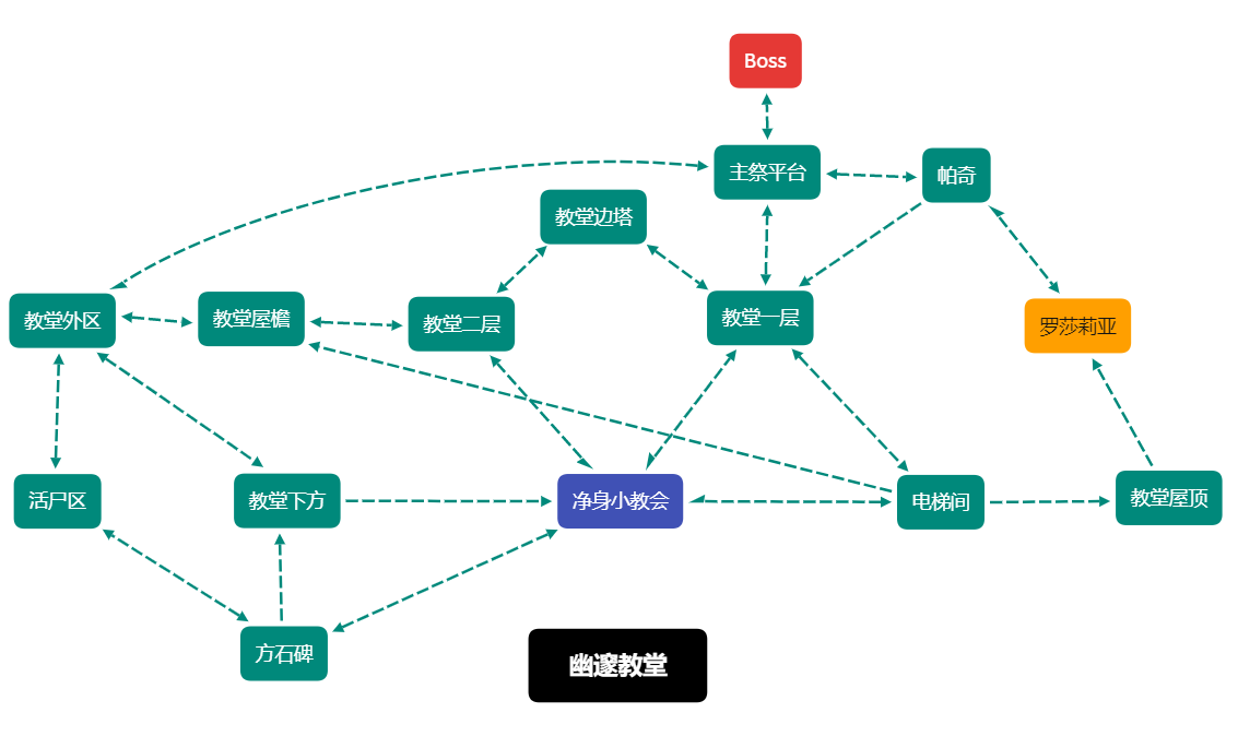 罪业之都、噩梦边境、法兰要塞、大教堂区、拜尔沃金斯、幽邃教堂的最简逻辑图