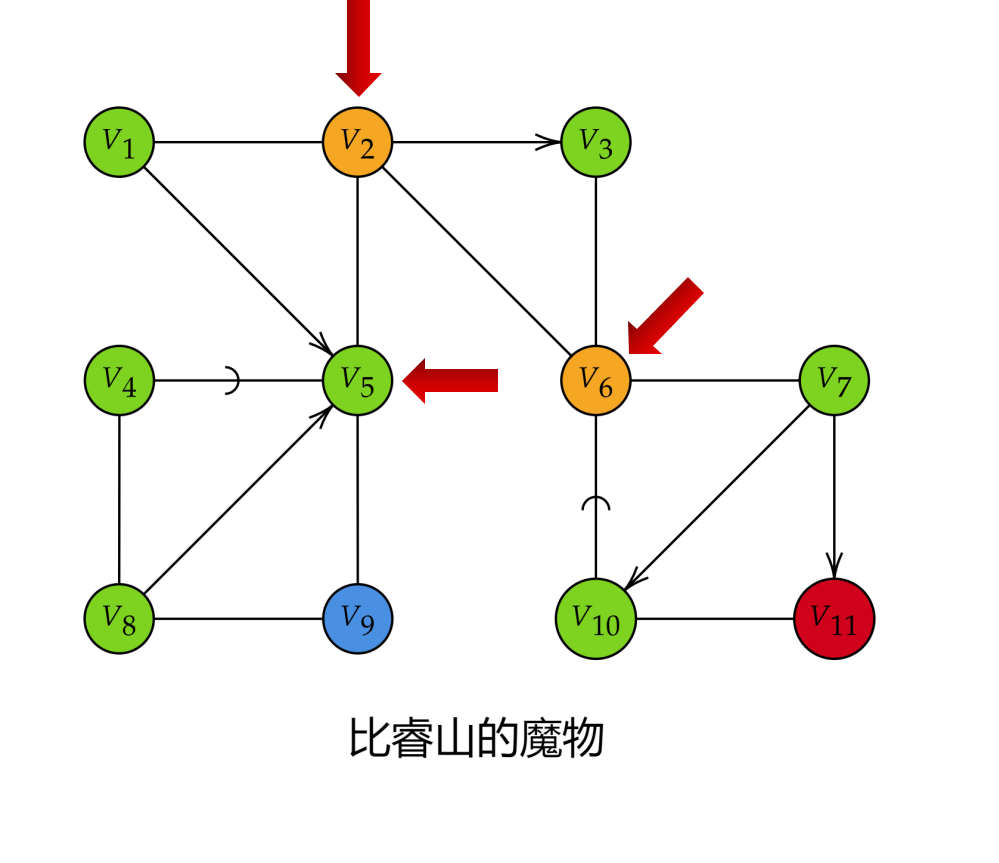 更进一步的,我们再次观察新的最简逻辑图,我们惊讶的发现三个存档点 、、V1、V4、V6V_1、V_4、V_6V_1、V_4、V_6 ,其实都离 V7V_7V_7 区域很近。也就是说,我们甚至可以将三个篝火合并为一个,此时也不会大幅增加玩家的跑图距离。